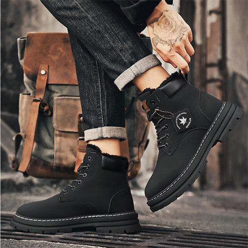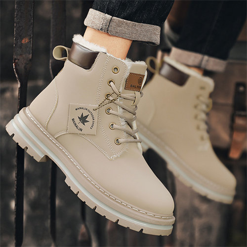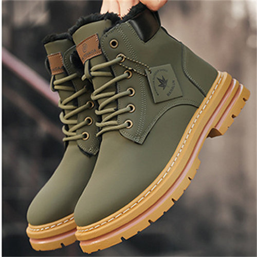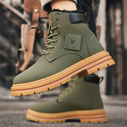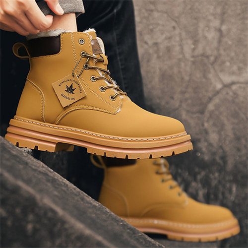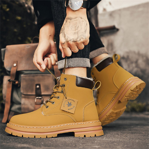 Large size men's winter velvet warm cotton shoes big yellow boots thick sole height increasing shoes