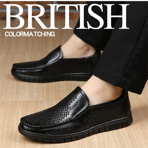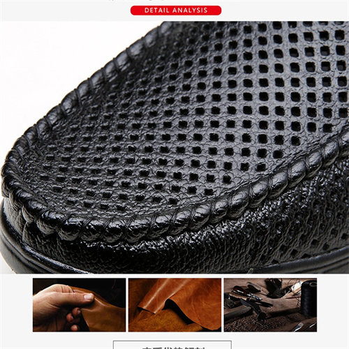 New summer men's sandals genuine leather soft bottom hollow casual leather shoes